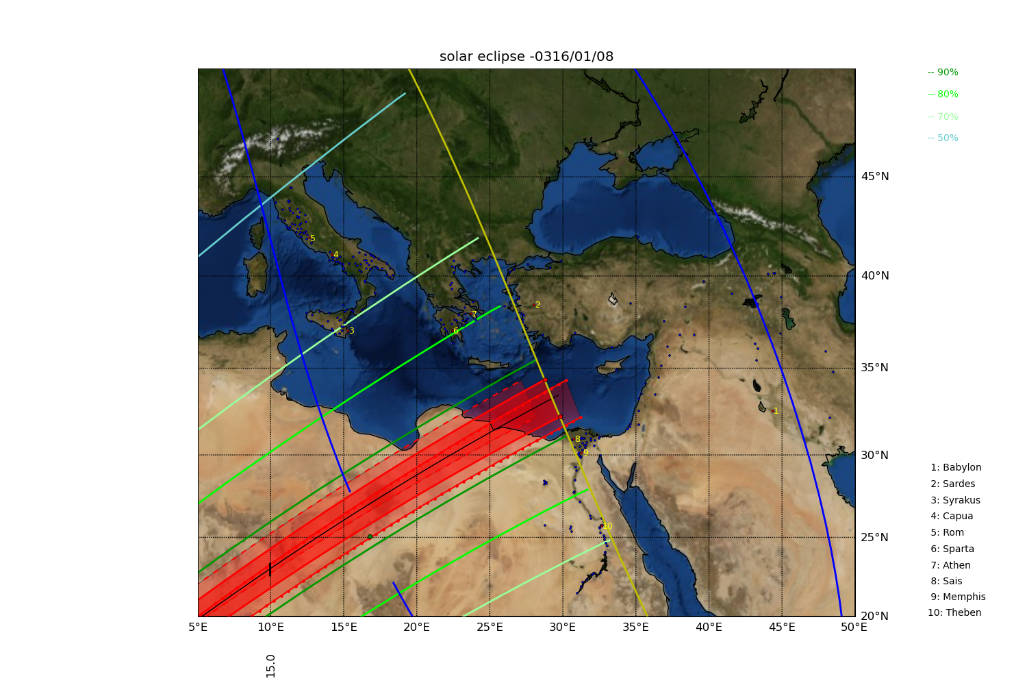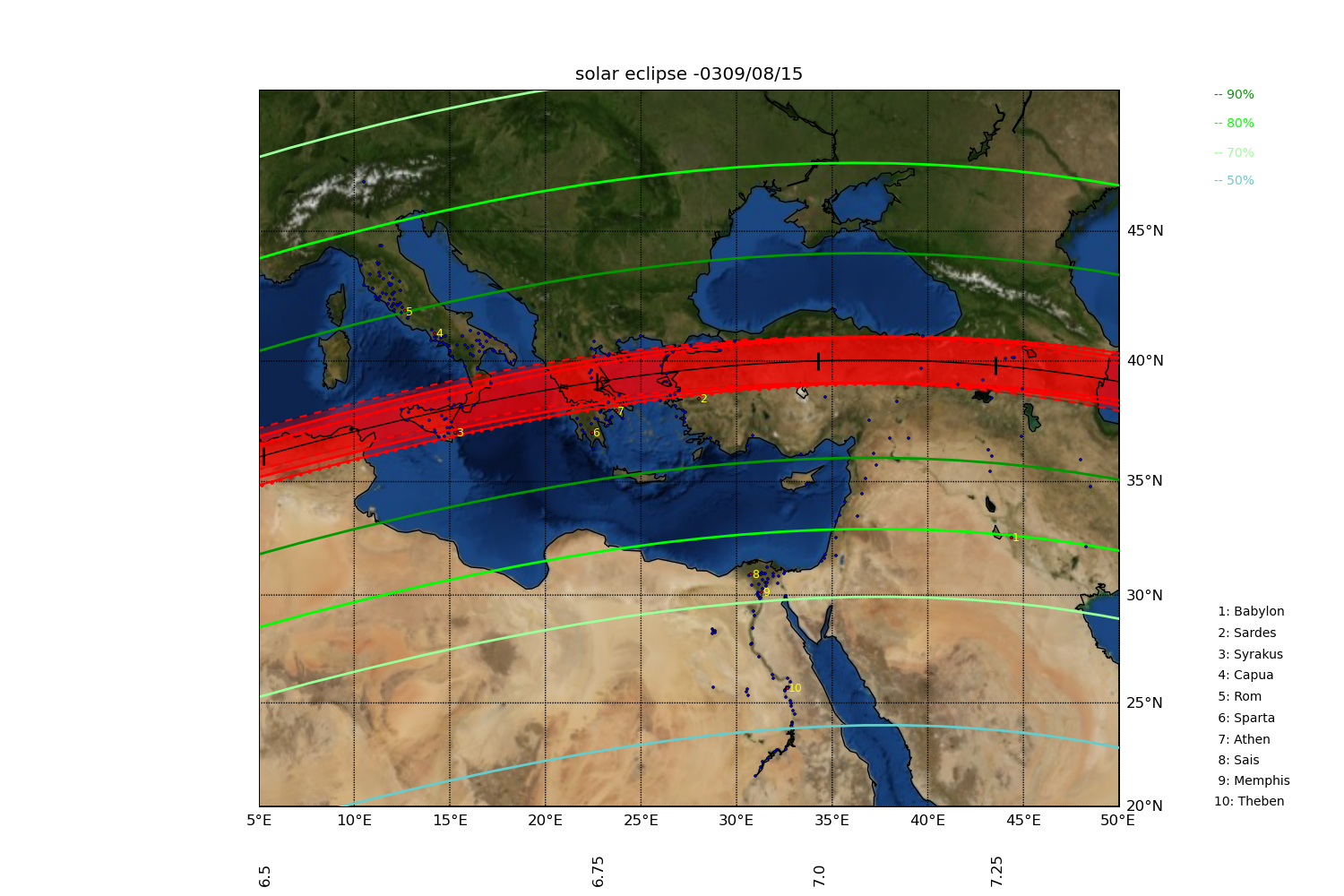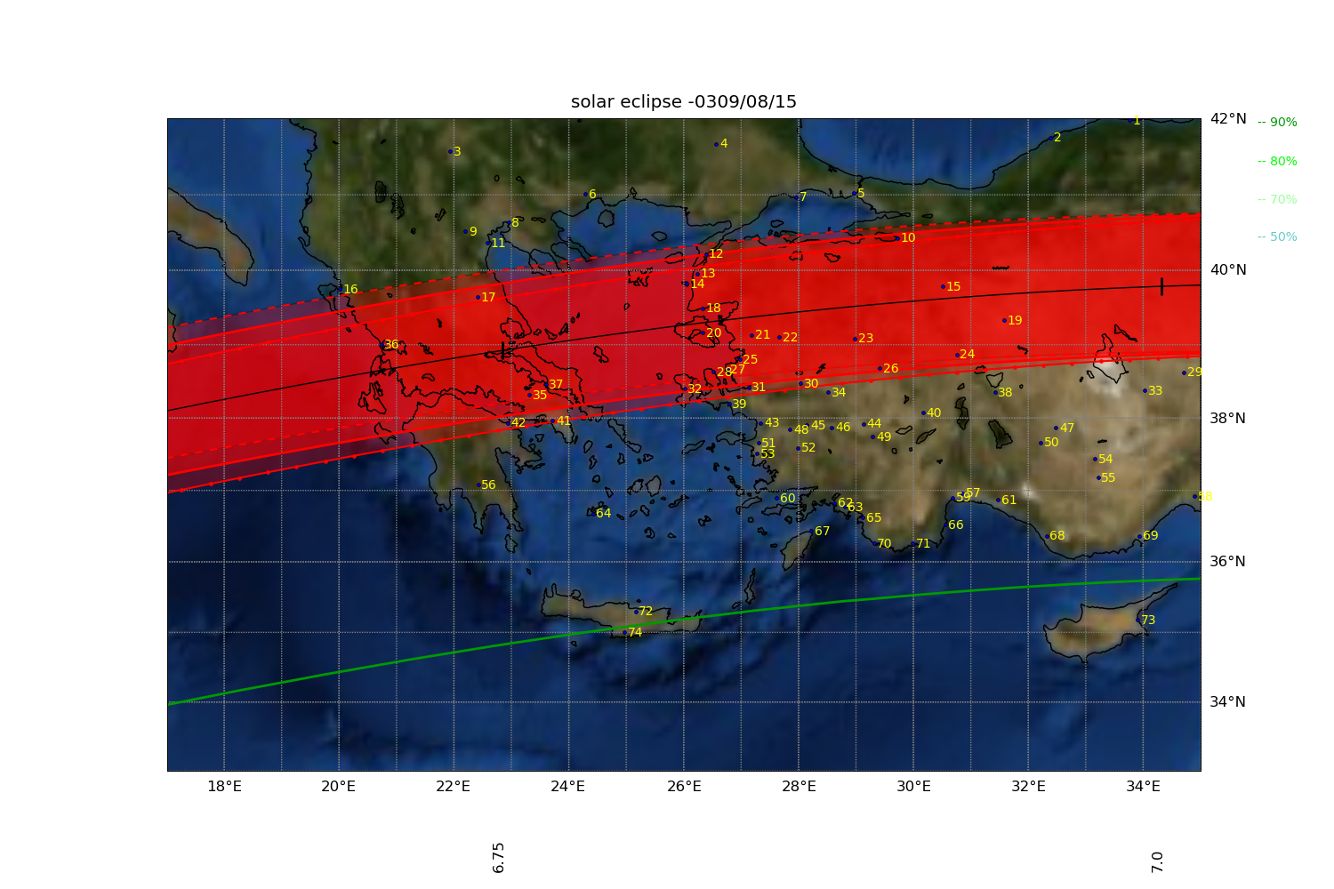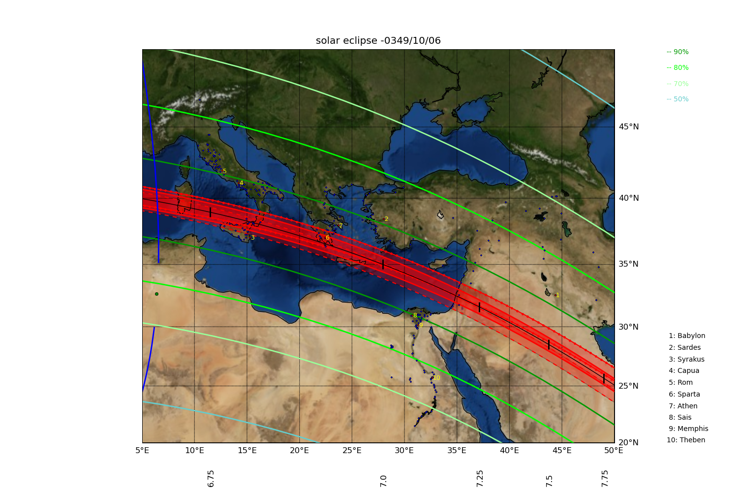 | Map: | Karte(n) mit Sichtbarkeitsgebiet der Sonnenfinsternis / map(s) with eclipse paths |