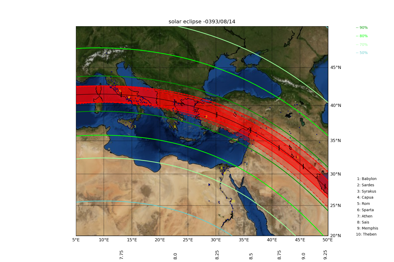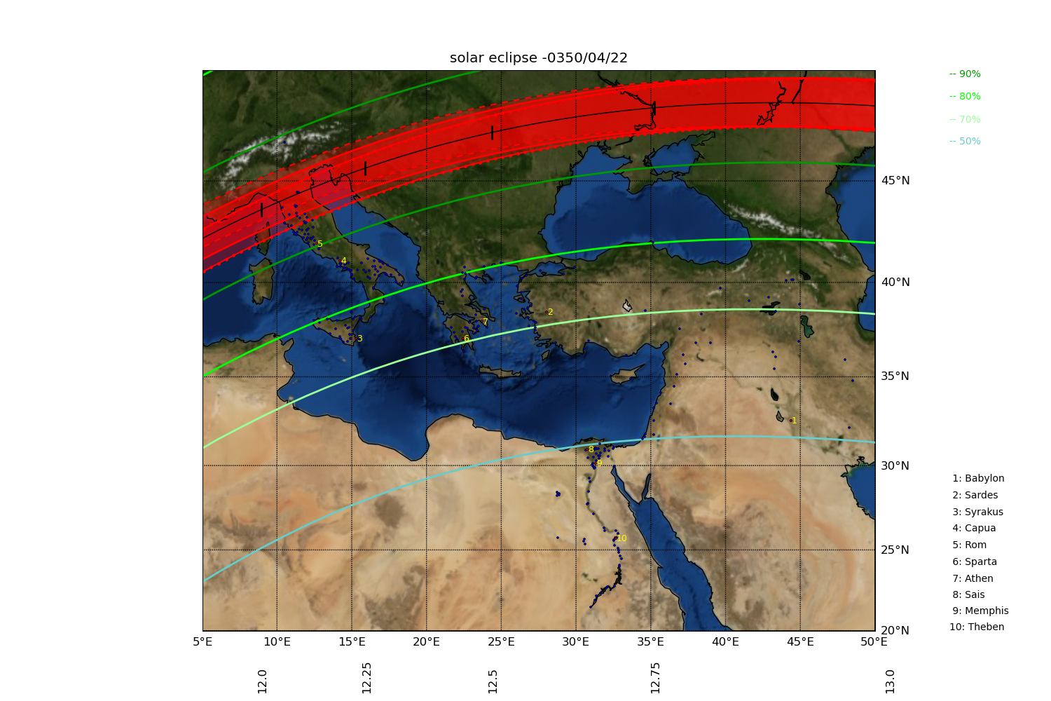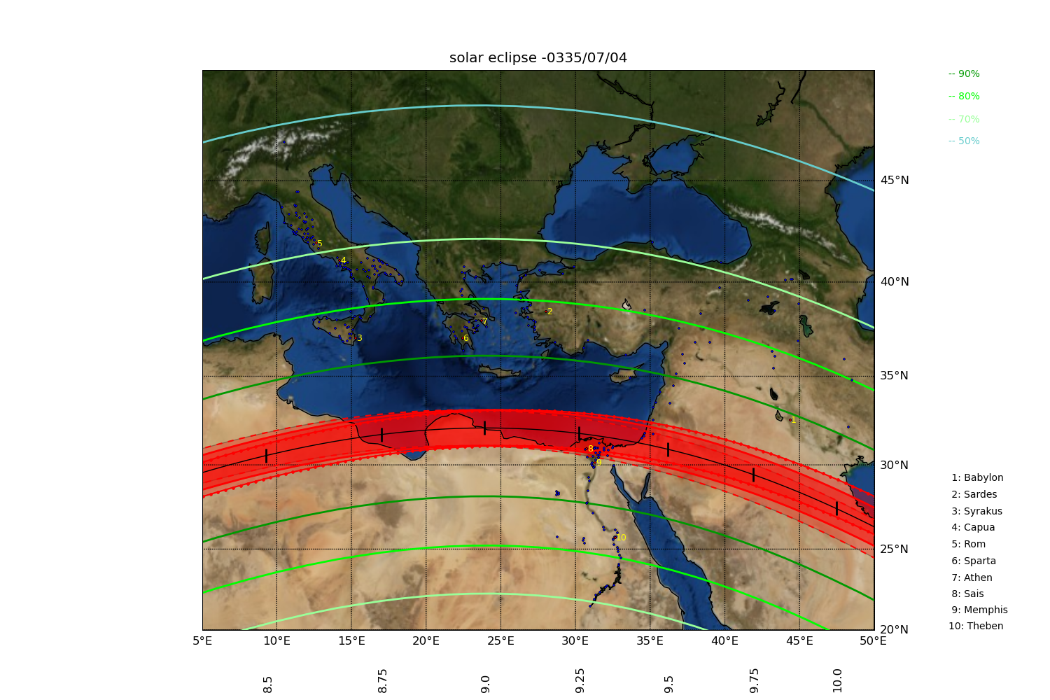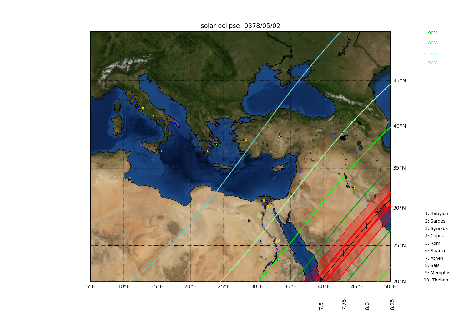 | Map: | Karte(n) mit Sichtbarkeitsgebiet der Sonnenfinsternis / map(s) with eclipse paths |