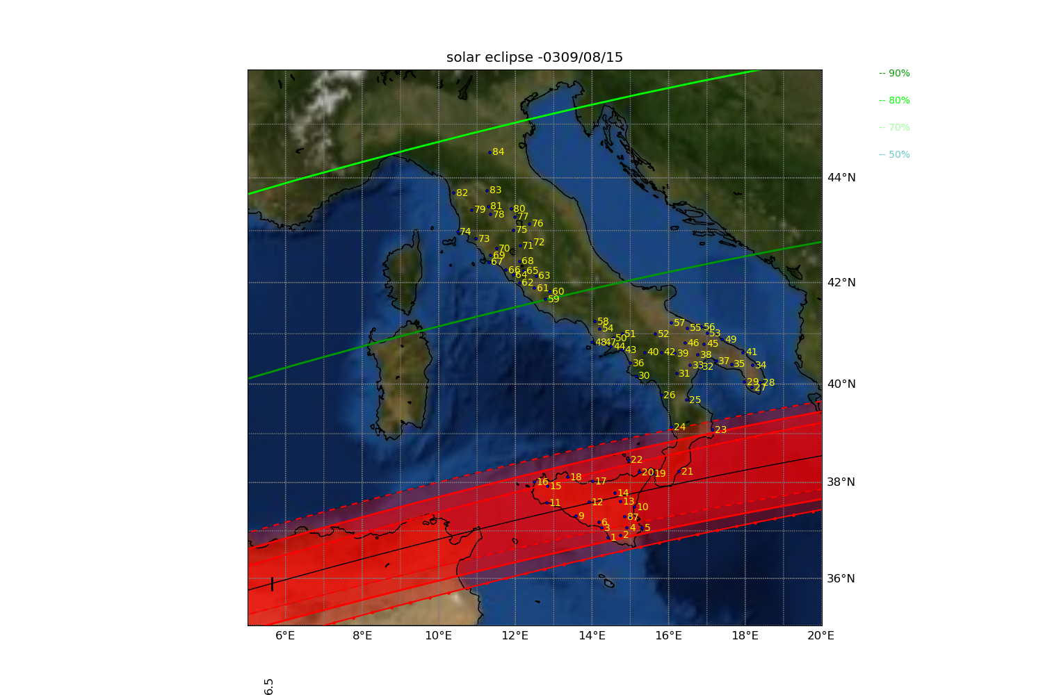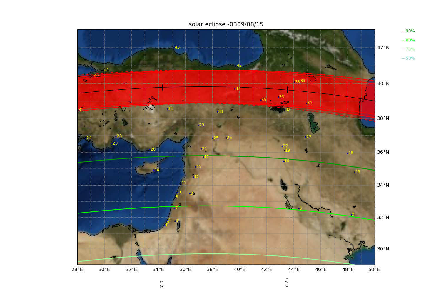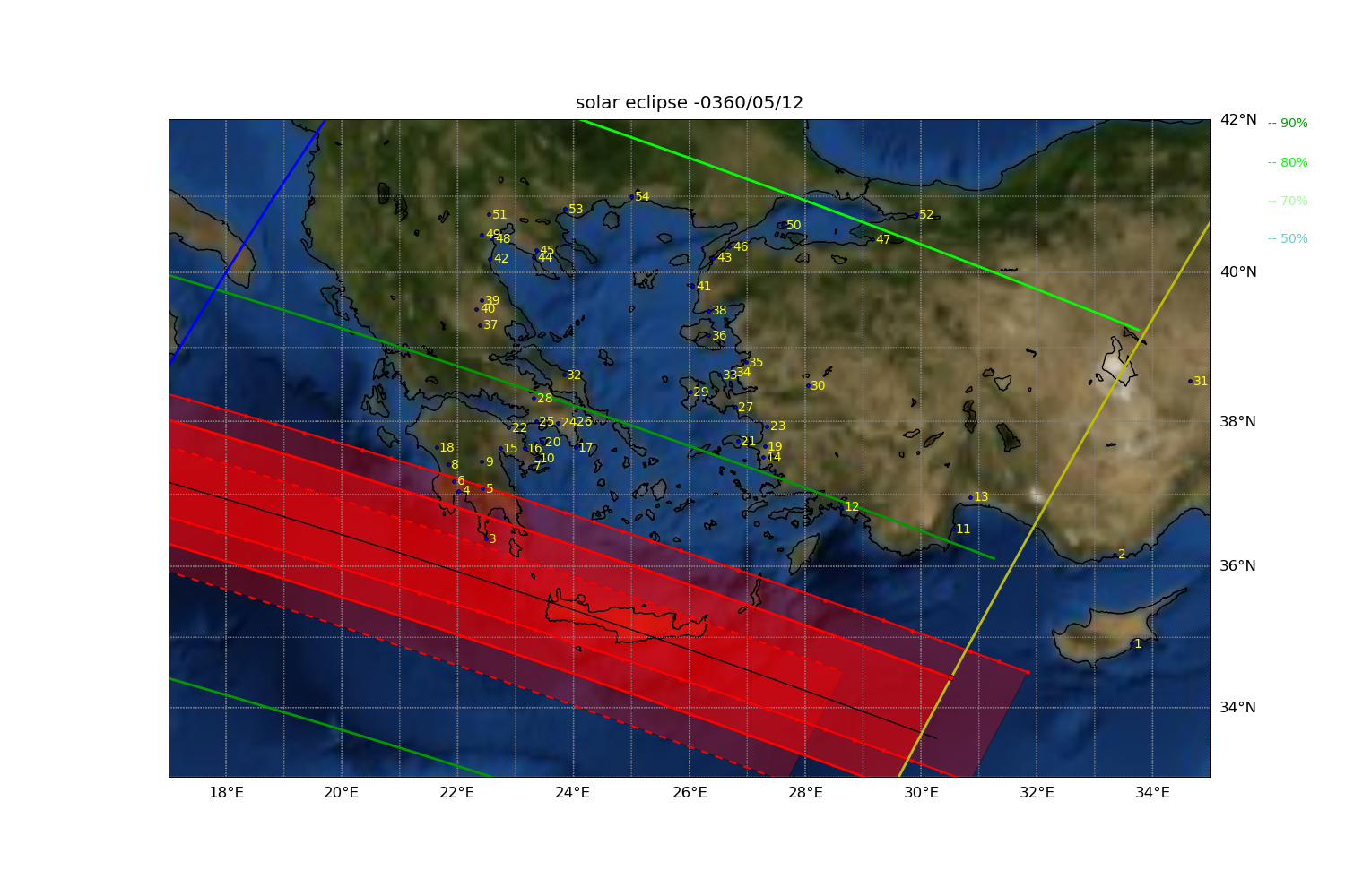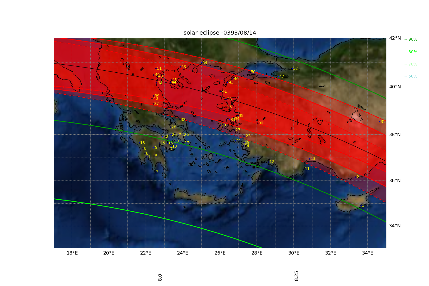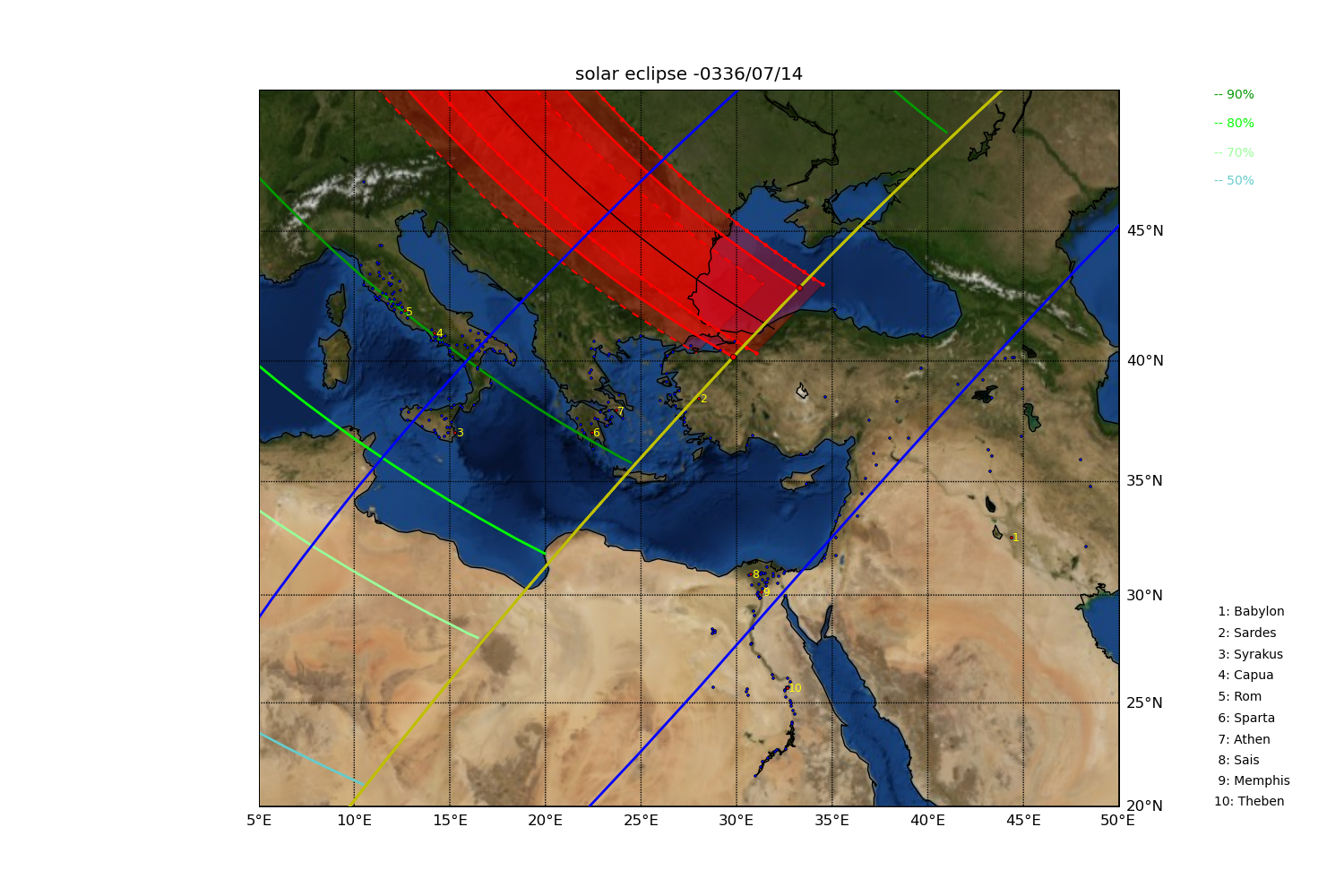 | Map: | Karte(n) mit Sichtbarkeitsgebiet der Sonnenfinsternis / map(s) with eclipse paths |
