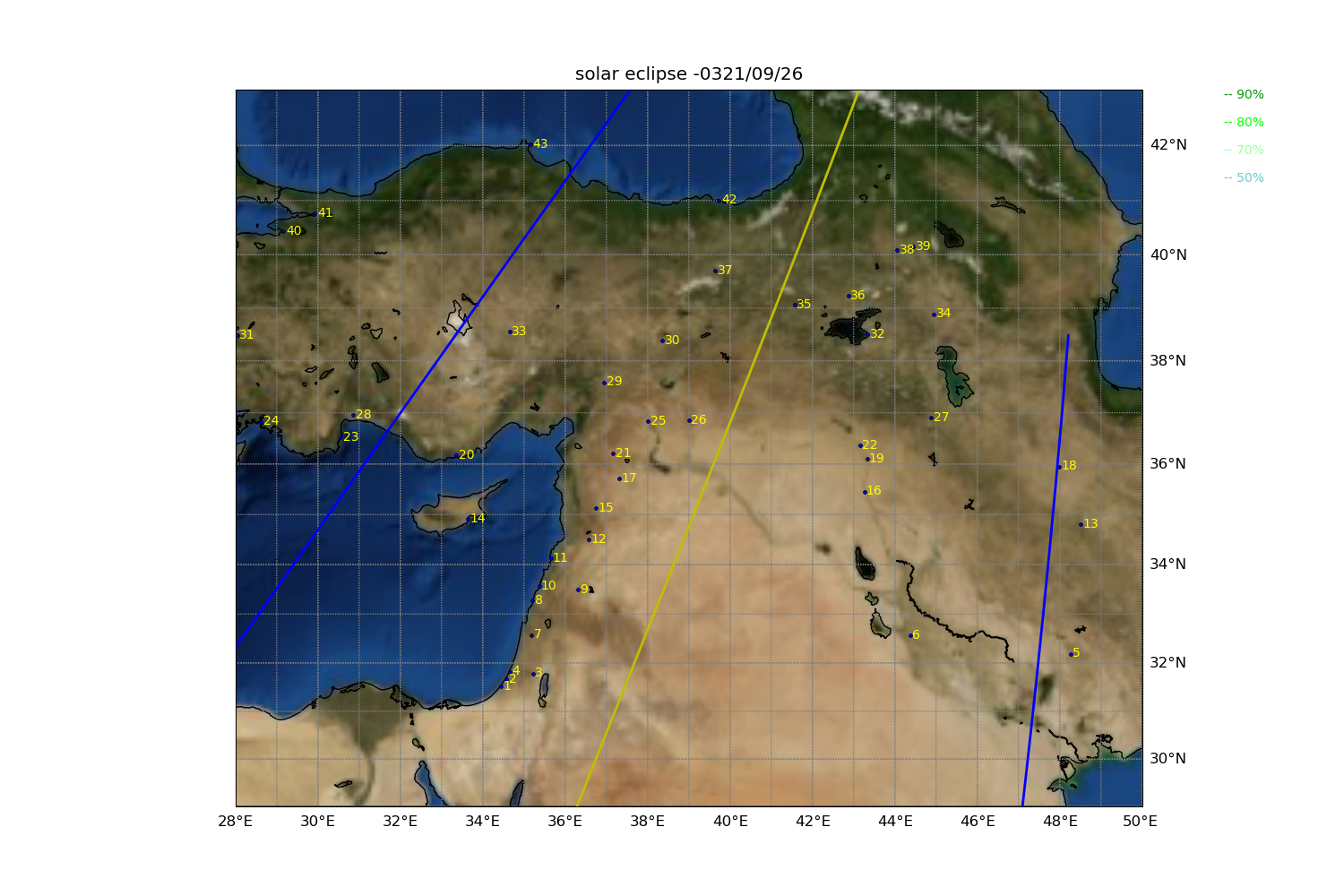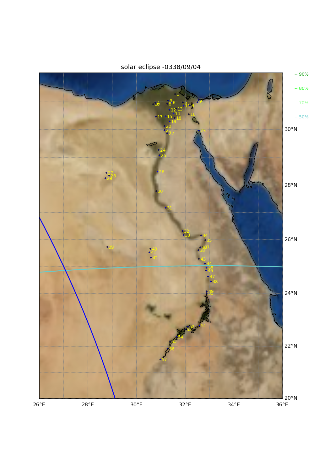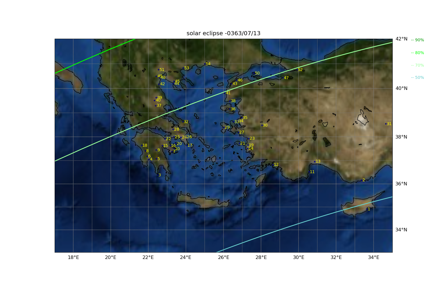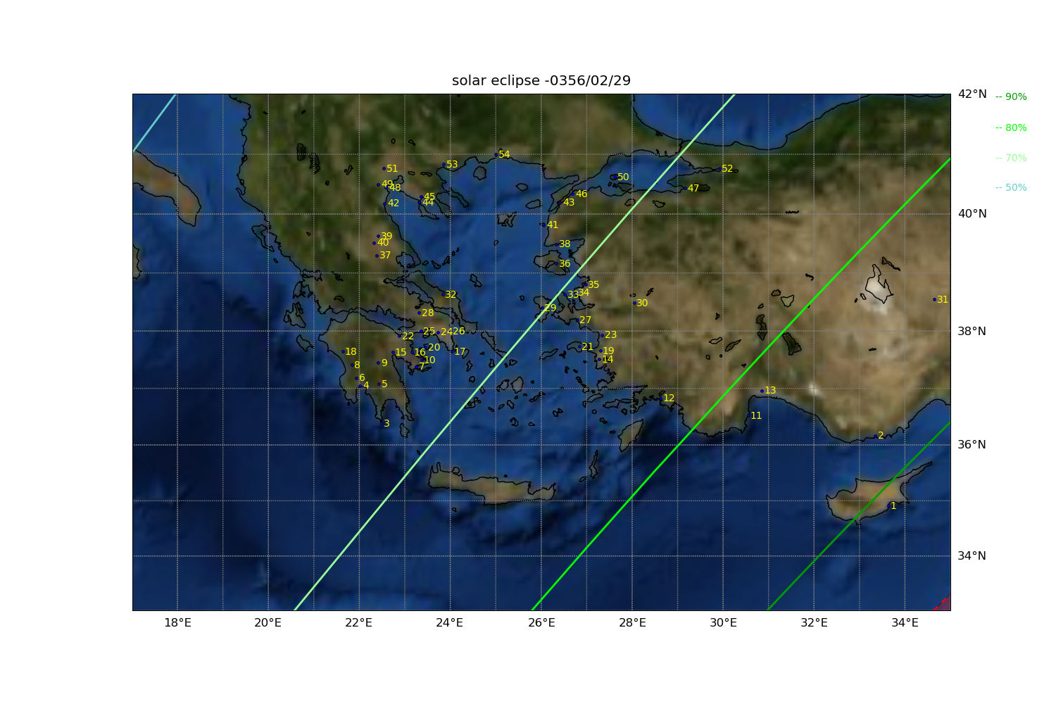 | Map: | Karte(n) mit Sichtbarkeitsgebiet der Sonnenfinsternis / map(s) with eclipse paths |